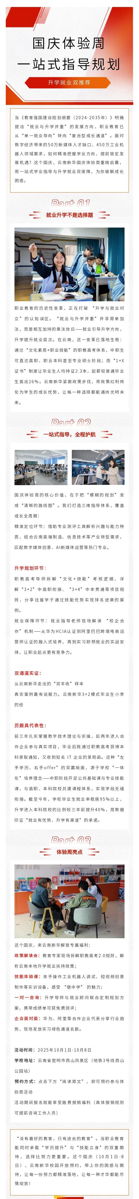云南新华国庆体验周,一站式学业指导规划,升学就业双通道!
